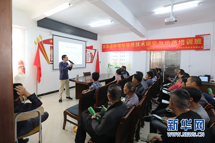 村民們正在接受茶葉相關(guān)知識(shí)的培訓(xùn)。新華網(wǎng) 李相博 攝