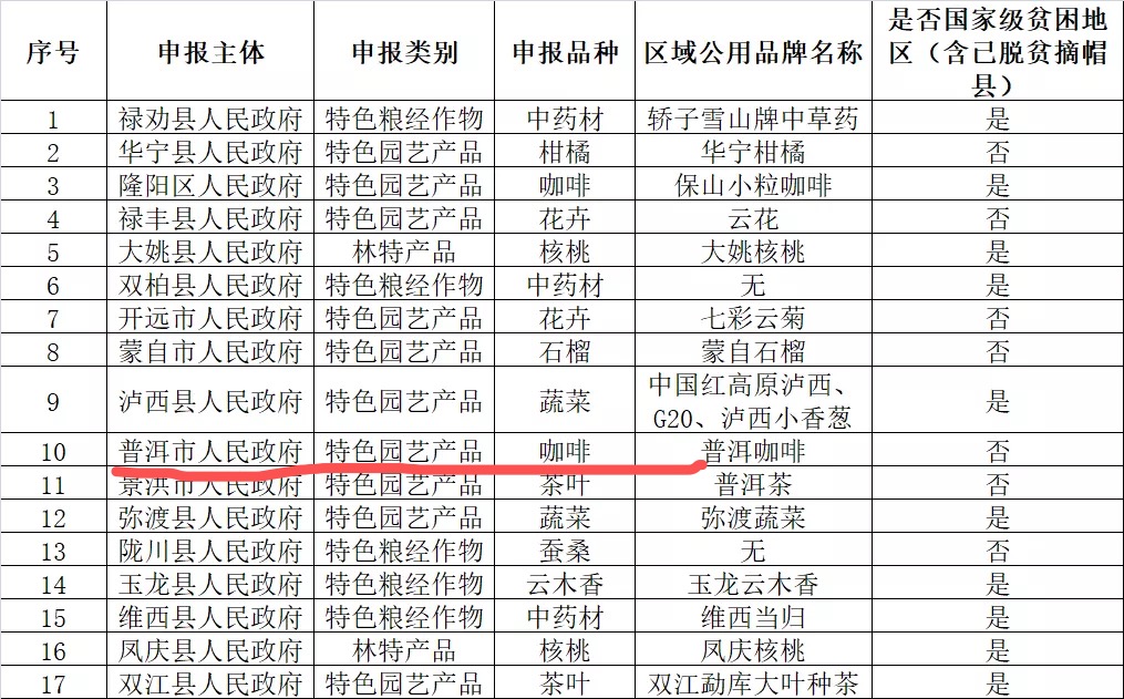 普洱咖啡上榜第二批“云南省特色農(nóng)產(chǎn)品優(yōu)勢區(qū)”名單