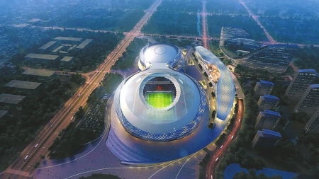 從空中俯瞰,鳳凰山體育公園建筑好似蓋碗茶。(效果圖)